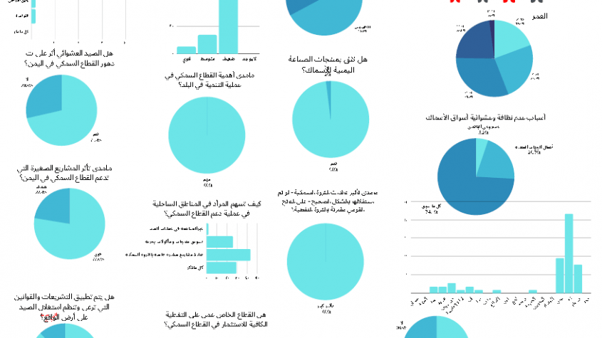 ويؤكد 93% من المستطلعين أن الصيد العشوائي أثر على عملية تدهور القطاع السمكي بشكل كبير ¡ بسبب ضعف دور الرقابة والتفتيش ¡ واستمرار الصراع ¡ وجهل المواطنين والصيادين ¡ والقرصنة ¡ كما يرى 51% أن دور منظمات المجتمع المدني ضعيف بما يخص دعم تطوير الإنتاج السمكي .
