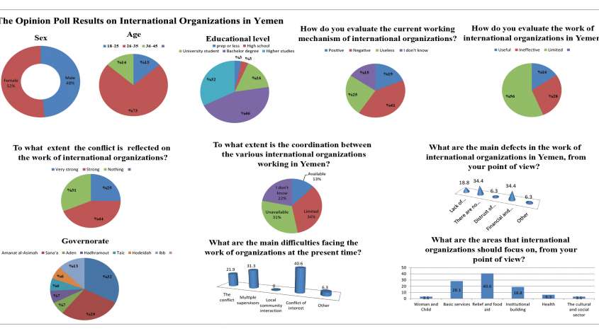 Home Previous Issues International Organizations in Yemen Public Opinion Poll: 56% of respondents said that the work of international organizations in Yemen is currently ineffective