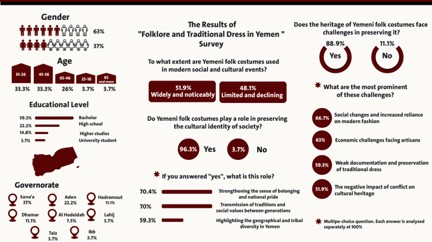 Home Previous Issues Folklore and Traditional Dress in Yemen 96.3% of the Participants in the Survey believe that Yemeni Folk Costumes play an Important Role in Preserving the Cultural Identity of Yemeni Society