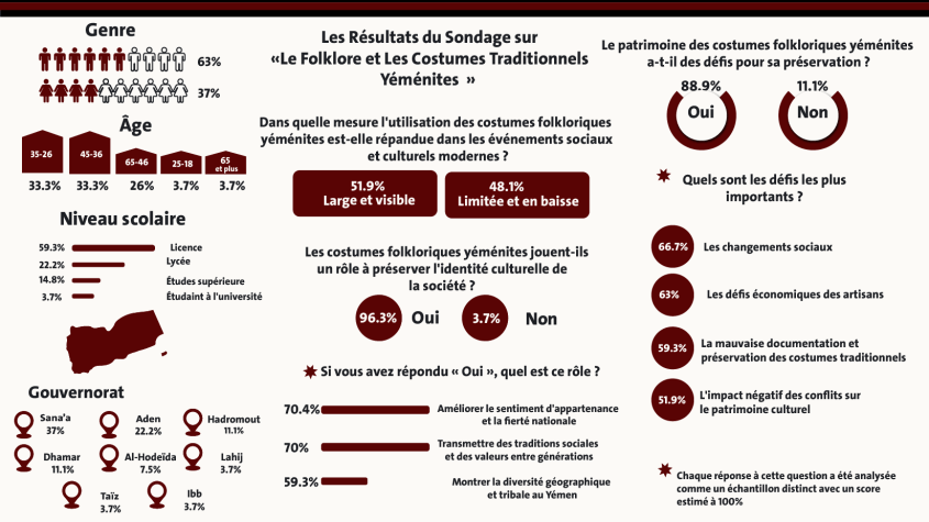 96,3% des participants à l’enquête estiment que les costumes folkloriques yéménites jouent un rôle important à préserver l’identité culturelle de la société yéménite
