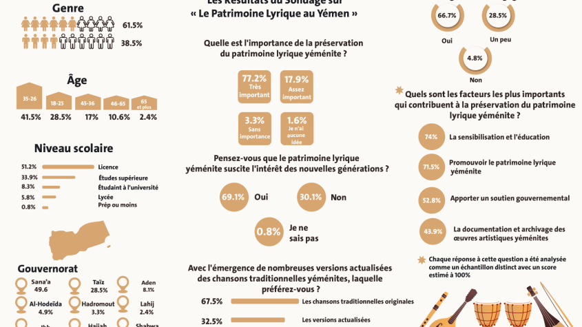 Home Numéros précédents Le Patrimoine Lyrique au Yémen 73,2% des participants pensent que le patrimoine lyrique au Yémen reflète fortement l’identité culturelle yéménite